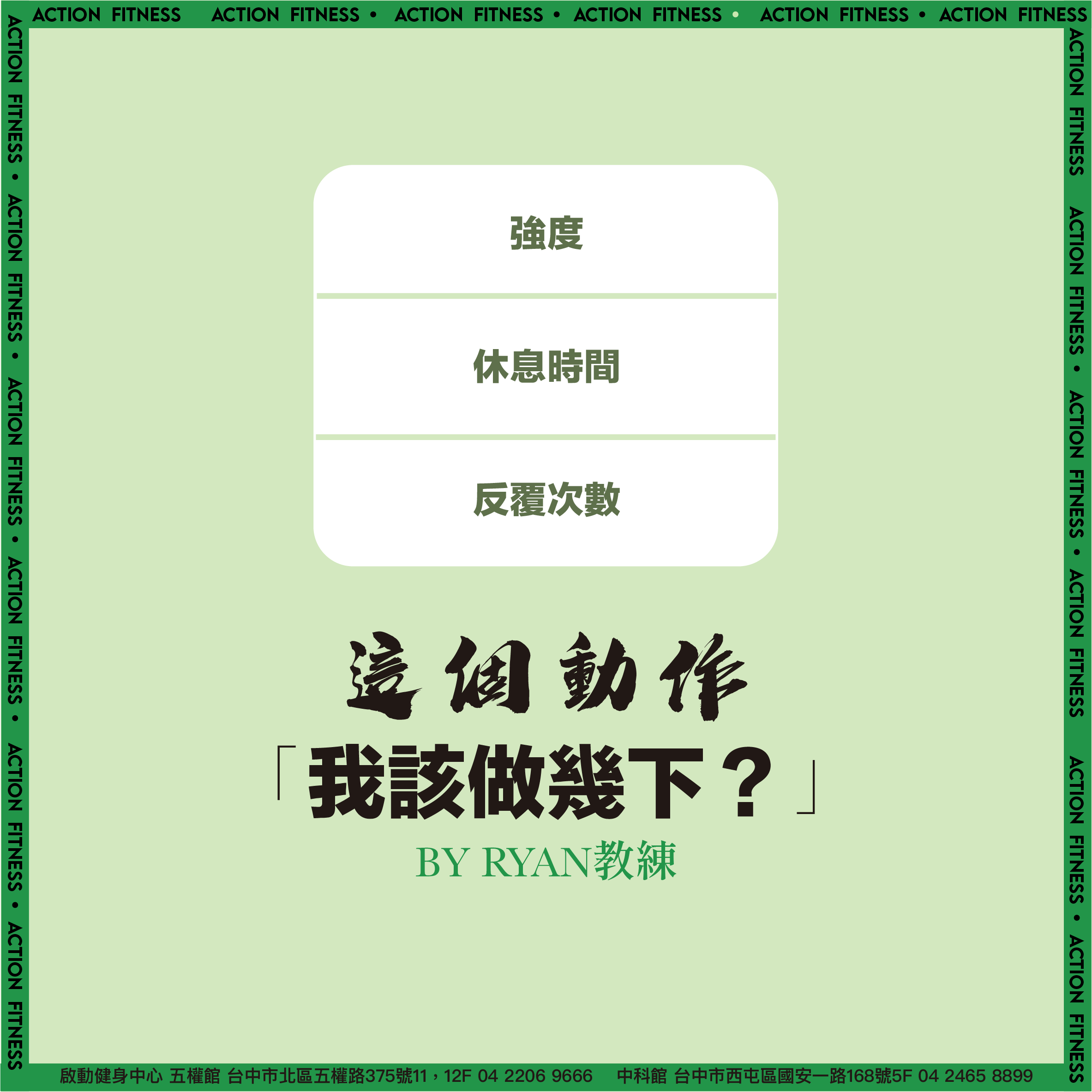 接觸重量訓練不久的你,是否知道該如何依照自己的訓練目標來選擇訓練變項呢?今天就來講一下「強度」、「反覆次數」與「休息時間」之間的關係。 […]